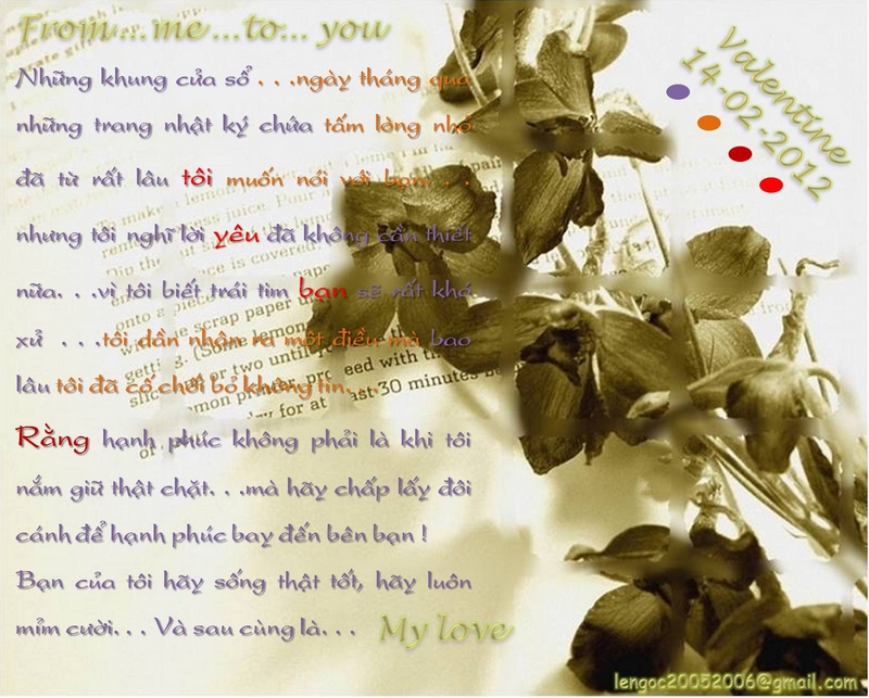 (SốngXanh.vn) Bạn có khả năng viết? Bạn có khả năng sáng tác ảnh hay làm video clip? Bạn muốn viết lên những thông điệp yêu thương bằng ngôn từ, những bức ảnh ý nghĩa hay bằng một đoạn video clip do bản thân tự sáng tạo? Hãy nhanh tay tham gia cuộc thi sáng tác do Mạng xã hội Sống Xanh tổ chức! Cuộc thi sáng tác với chủ đề “Trao gửi những yêu thương” được tổ chức nhân dịp Valentine 14/2 sắp tới. Valentine được biết đến như một dịp để bạn thể hiện yêu thương dành cho một nửa của mình. Không chỉ dành cho những cặp tình nhân, đây cũng là cơ hội để các bạn gửi những thông điệp yêu thương cho những người bạn, người thân trong gia đình. Cuộc thi sẽ bắt đầu từ ngày 10/2 đến 20/2. Những sáng tác dự thi của các bạn xin đăng trực tiếp lên trang web songxanh.vn trước ngày 20/2. Với thể loại viết, bài dự thi không quá 1.000 từ. Ở phóng sự ảnh, bài dự thi từ 3 đến 5 tấm hình có chú thích tạo nên nội dung câu chuyện kèm theo thông điệp yêu thương. Đối với video clip, bài dự thi thể hiện thông điệp yêu thương không quá 60 giây. Bài dự thi xin ghi rõ trên tiêu đề là: Tham dự cuộc thi sáng tác “Trao gửi những yêu thương”. Tất cả các bài dự thi của các bạn sẽ được bạn đọc bình chọn bằng cách cho điểm bài viết (chọn từ 1 đến 5 hình cỏ ba lá màu xanh trong phần phản hồi bài viết). Kết quả cuộc thi sẽ dựa vào sự đánh giá của BTC cùng với kết quả bình chọn qua mạng và được công bố vào ngày 22/2. Các giải thưởng nhất, nhì, ba sẽ nhận được những phần quà ý nghĩa từ Mạng Xã hội Sống Xanh. Hãy cùng thể hiện khả năng sáng tác của mình để làm những món quà tình yêu thật ý nghĩa cho những những người mà bạn yêu thương trong mùa Valentine 2012! Sống Xanh