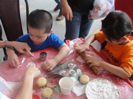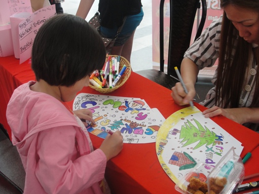 Các em bé tập tô màu cho tranh ở gian của tổ chức sinh viên AIESEC: