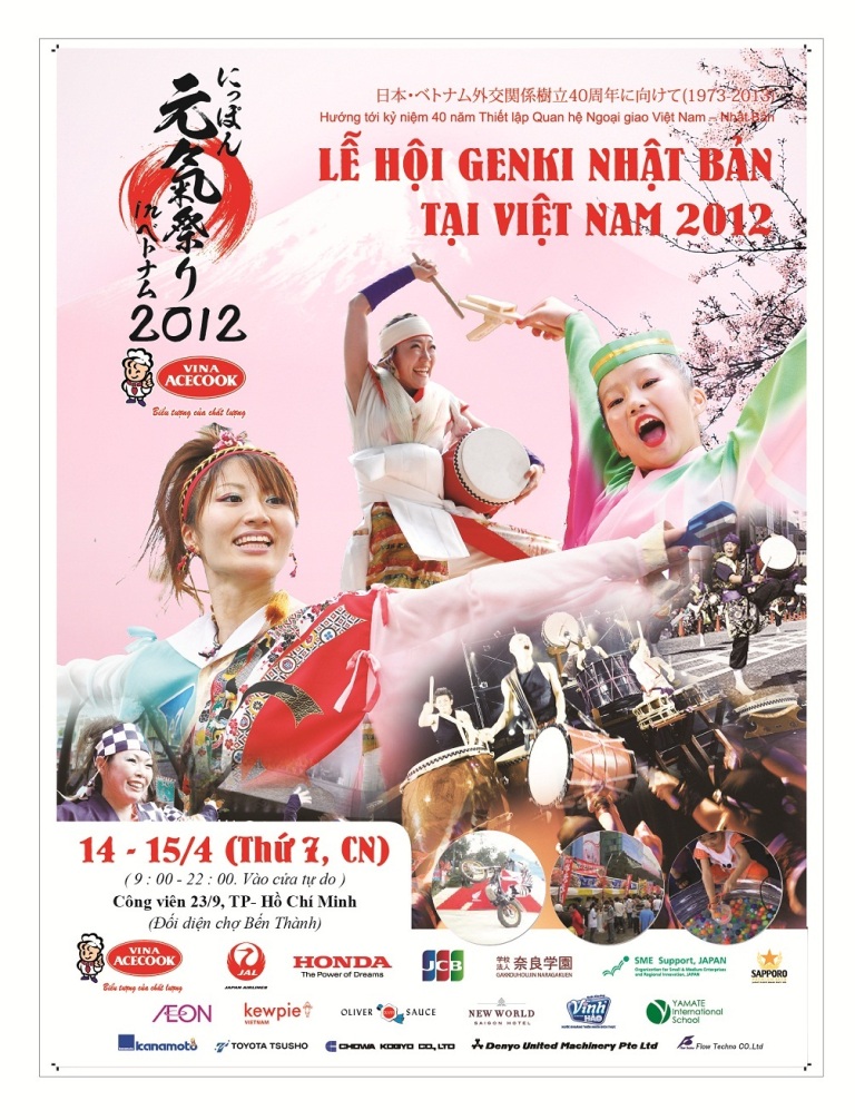 Đây là Lễ hội hàng năm như một hoạt động giao lưu văn hóa, giao lưu giữa các doanh nghiệp Việt Nam và Nhật Bản, góp phần nhỏ trong các hoạt động nhằm thúc đẩy quan hệ Ngoại giao giữa Việt Nam và Nhật Bản ngày càng phát triển, tinh thần đoàn kết hữu nghị giữa nhân dân và giới trẻ hai nước ngày càng thân thiết hơn. Đặc biệt hơn nữa, hoa Anh Đào và gần 150 nghệ sỹ sang tham gia Lễ hội lần này không chỉ nhằm mục đích trưng bày và giới thiệu mà còn mang thông điệp bày tỏ sự trân trọng và lòng biết hơn sâu sắc từ phía Nhật Bản gửi tới nhân dân Việt Nam đã ủng hộ cả về vật chất lẫn tinh thần cho những người dân vùng Đông Bắc Nhật Bản trong thảm họa kép động đất-sóng thần vừa qua. Hướng tới Kỷ niệm 40 năm thiết lập quan hệ Ngoại giao Việt Nam - Nhật Bản (1973-2013) LỄ HỘI GENKI NHẬT BẢN TẠI VIỆT NAM 2012 Thời gian: 14 – 15 tháng 4 năm 2012 (Thứ7, CN) 9:00 ~ 22:00 Nội dung: Trung bày hoa Anh Đào tươi, sân khấu trọng tâm là các điệu múa truyền thống Nhật Bản, trình diễn / Múa Yosakoi trên sân khấu và giới thiệu ẩm thực và các trò chơi truyền thống Nhật Bản / Các gian hàng giới thiệu của doanh nghiệp hai nước / Trình diễn Motobay...
