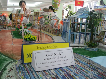 Sản phẩm “Sự hồi sinh của giấy” của nhóm học sinh trường tiểu học Nguyễn Đức Cảnh, Q5 đoạt giải nhất cuộc thi “Sức sống mới từ phế thải”