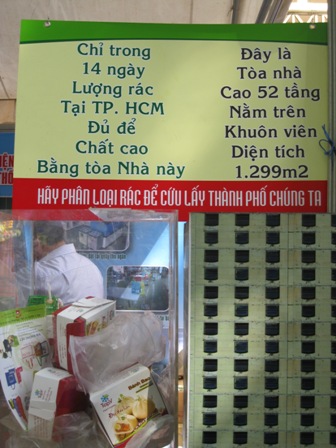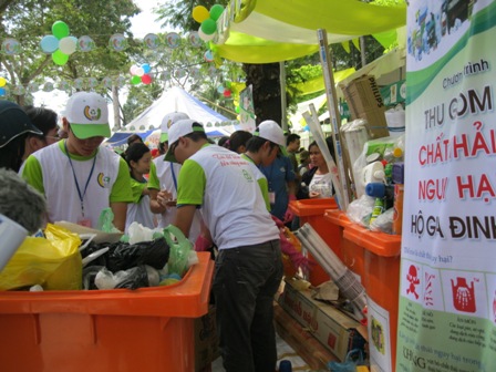 Khu vực thu gom chất thải nguy hại hộ gia đình (gồm có: bình đựng hóa chất nguy hại, pin, ắc-qui hư cũ, bóng đèn hư cũ). Chương trình thu gom này đã được thực hiện trước ngày hội 1 tuần tại 104 điểm trên địa bàn TP