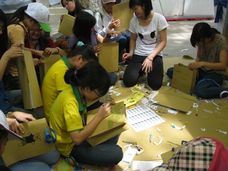 Khu vực làm tại chỗ và trang trí túi giấy. Các bạn ở đây sẽ chỉ cách xếp túi giấy để tái sử dụng giấy vào việc hữu ích khác