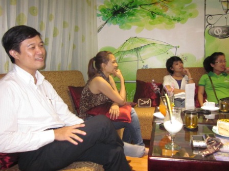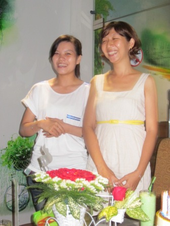 Nhìn hai nhân vật chính rất hạnh phúc Chúc hai bạn luôn hạnh phúc nhé! Làm quen và kết nối Buổi tiệc không chỉ có các thành viên của Sống xanh, một số anh chị trong CLB Doanh nhân xã hội miền Nam (SSEC) cũng đến góp phần chung vui. Hôm đó nếu ai tham gia thì quả là “lời” rất nhiều. Vừa được ăn sinh nhật, vừa có cơ hội để tìm hiểu các thành viên khác, vừa có cơ hội để làm quen với các anh chị trong câu lạc bộ SSEC – là những người có nhiều kinh nghiệm sống hơn các bạn trẻ Sống xanh.