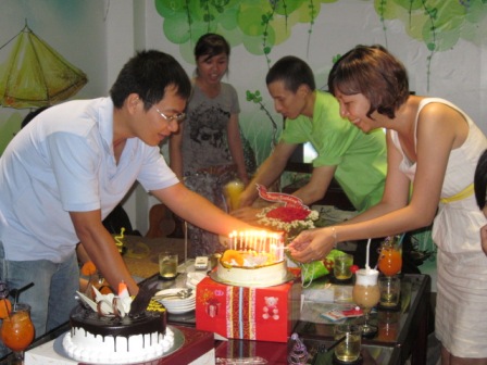 SốngXanh.vn- Tối ngày 17/4, Sống xanh đã có một buổi tiệc sinh nhật thật ý nghĩa cho các thành viên có sinh nhật trong tháng 4. Buổi tiệc diễn ra trong một không gian hết sức ấm cúng và thoải mái. Nhân dịp này, các thành viên không những có cơ hội để hiểu nhau hơn mà còn là dịp các thành viên chia sẻ với nhau những kinh nghiệm để tạo sự liên kết và xây dựng được thương hiệu bản thân? Bạch Dương – năng động và nhiệt huyết Mở đầu buổi tiệc, các thành viên có sinh nhật trong tháng 4 trở thành tâm điểm. Điều khá bất ngờ và thú vị là hai thành viên có sinh nhật trong tháng này là hai nhân vật nữ có cả tên và họ gần giống nhau. Đó là bạn Nguyễn Thị Hương Thanh (2/4) và bạn Nguyễn Thị Hà Thanh (17/4). Và cả hai bạn đều có cung hoàng đạo là Bạch Dương. Những điểm thật trùng hợp đúng không nào?
