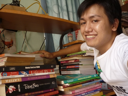 Khó khăn là thế nhưng nụ cười vẫn luôn rạng ngời trên môi Huỳnh (Hình nhân vật cung cấp) Tất cả điều đó là động lực để Huỳnh ngày càng mở rộng Dự án. Hiện tại Huỳnh đang có khoảng 1000 đầu sách, chủ yếu là truyện tranh, truyện ngắn, giáo trình, sách tiếng anh… Hàng ngàn cuốn sách qua tay Huỳnh đã được hồi sinh và được trân trọng. Nhờ sự nhân rộng của mạng xã hội mà nguồn sách cũng được mở rộng. Mọi người biết đến Dự án nhiều hơn chính là thành công của Huỳnh. Vì chưa có đủ tiền để mua lại tên miền nên trang web Nhasachcu.net đã tạm ngừng. Hiện tại, Huỳnh chủ yếu đánh mạnh vào facebook và các diễn đàn trên mạng để mở rộng dự án đến mọi người. Mong muốn có một mặt bằng để trao đổi, giao lưu về sách cũng là điều Huỳnh đang nung nấu. Hiện tại Huỳnh đang đi làm nhưng vẫn bỏ thời gian rảnh cuối tuần để đi thu gom sách ở các nơi. Bên cạnh Huỳnh luôn có sự ủng hộ và giúp đỡ của người thân, bạn bè. “Bảo vệ môi trường không phải là điều gì đó quá lớn lao mà bản thân mỗi chúng ta đều có thể góp phần bảo vệ môi trường. Đó là thông qua những việc làm tưởng chừng nhỏ nhặt nhất như cho đi một quyển sách cũ để quyển sách ấy đến tay người thực sự cần”. Đó là thông điệp bạn Trần Huỳnh muốn gửi đến tất cả chúng ta. M.Đoan- SốngXanh.vn