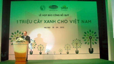 SốngXanh.vn- Ngày 18-4, tại Hà Nội, Tổng cục Môi trường (Bộ TN-MT) cùng Công ty Cổ phần Sữa Việt Nam (Vinamilk) đã ra mắt Quỹ 1 triệu cây xanh cho Việt Nam từ việc trích 50 đồng trên mỗi sản phẩm Vfresh của Vinamilk bán được. Chương trình hướng đến mục tiêu trồng được 1 triệu cây xanh tại các TP lớn trên cả nước. Năm đầu tiên dự kiến sẽ trồng cây tại: Hà Nội, TPHCM, Hải Phòng, Đà Nẵng. Số lượng cây xanh sẽ được tăng theo từng năm và mở rộng đến các TP khác để hướng đến mục tiêu trồng 1 triệu cây xanh cho Việt Nam. Trong năm 2012, Vinamilk cam kết số tiền tối thiểu trích ra sẽ là 3 tỉ đồng. Trong khuôn khổ chương trình này, Vinamilk còn hỗ trợ thêm 300 triệu đồng để trao thưởng cho các cá nhân, tập thể có các ý tưởng trồng cây hiệu quả. Ngoài ra, mỗi tin nhắn gừi về bình chọn cho thí sinh trong cuộc thi “Bước nhảy Hoàn vũ năm 2012” cũng sẽ được trích ra 100 đồng cho Quỹ.