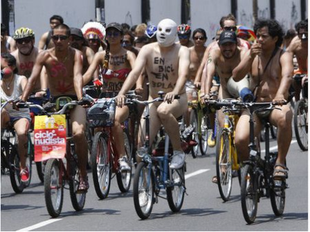 Hàng năm, tổ chức World Naked Bike Ride kêu gọi những thành viên ủng hộ chương trình bảo vệ môi trường tham gia tuần hành trên xe đạp với trang phục hoàn toàn thiên nhiên. Yêu cầu của cuộc tuần hành là tuyệt đối không được mặc một trang phục nào trên người và chỉ sử dụng xe đạp, sẽ được diễn ra trên 27 thành phố nhiều quốc gia ở Châu Âu. Tại London, khoảng 1 ngàn người khỏa thân đi xe đạp trong một chiến dịch phản đối việc con người dựa quá nhiều vào nguồn tài nguyên dầu mỏ, từ bỏ văn hóa ô tô-thứ văn hóa do cuộc sống dựa dẫm quá nhiều và cho ràng ô tô thể hiện vị trí xã hội. Chính quyền London cho phép sự kiện này diễn ra và cung cấp lực lượng cảnh sát để bảo vệ an toàn giao thông , tránh tắc đường để kêu gọi mọi người có hành động bảo vệ môi trường sống
