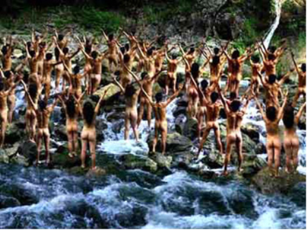 Tại Trung Quốc, trước tình trạng môi trường sinh thái của xứ sở Vạn Lý Trường Thành đã bị biến đổi nghiêm trọng, 100 tình nguyện viên đã đồng ý tham gia chụp ảnh nude tập thể để kêu gọi mọi người chú tâm hơn đến các vấn đề môi trường. Nhiếp ảnh gia He Yuanbo đã đứng ra kêu gọi và thực hiện hoạt động này. Một đất nước có văn hóa tương đồng nhiều nét với ViệtNamnhất là về sự tế nhị và kín đáo thì đây cũng là một hoạt động mới mẻ. Tuy nhiên, người dân đã bắt đầu chấp nhận với loại hình nghệ thuật như chụp ảnh nude bởi lẽ, mục đích của hoạt động này thực sự là vì môi trường.