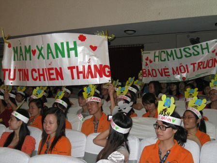 Cổ động viên trường ĐH KHXH&NV thể hiện tình yêu môi trường Minh Ly- SốngXanh.vn