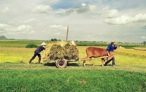 Đây là những hình ảnh được chụp trên cánh đồng quê Ý Yên, Nam Định quê tôi, nơi người dân đang thu hoạch vụ mùa - độc giả Phong Vũ chia sẻ.