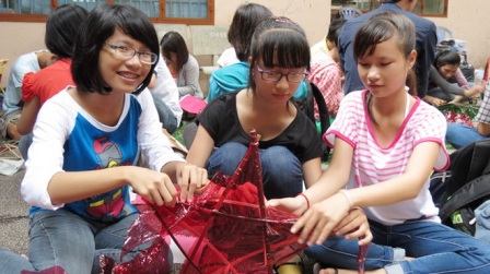 Cùng kết nối yêu thương Sáng 23-9, hơn 300 tình nguyện viên có mặt tại số 5 Đinh Tiên Hoàng, Q.1, TP.HCM để tham gia ngày hội “Kết lồng đèn - nối ước mơ” do nhóm tình nguyện Những ước mơ xanh tổ chức. Những chiếc lồng đèn này sẽ được gửi đến trẻ em tại Tân Trụ, Long An. Đi xe buýt 2 tiếng từ Long An lên TP.HCM để tham dự ngày hội, bạn Kim Phường - học sinh lớp 9 Trường THCS Hậu Nghĩa, Long An - chia sẻ: “Mình mong có thể làm được thật nhiều lồng đèn để gửi tặng các em nhỏ quê mình trong mùa trung thu này. Đó sẽ như lời chúc của mình dành cho các em, chúc các em học giỏi và có mùa trung thu ấm áp”. Nhóm Những ước mơ xanh sẽ tổ chức Trung thu và tặng quà cho 500 thiếu nhi tại Tân Trụ, trao 20 chiếc xe đạp (1 triệu đồng/chiếc) cho các thiếu nhi vượt khó học giỏi vào ngày 29-9.
