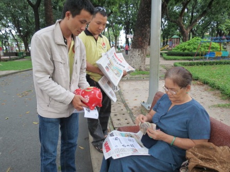 Ngày hội không chỉ thu hút các tình nguyện viên Việt Nam mà có cả những người nước ngoài. Cô gái Laura Van Der Woude đến từ Hà Lan chia sẻ: “Đây là lần đầu mình làm lồng đèn nên chiếc đèn của mình trông không đẹp lắm! Song mình vẫn hi vọng món quà nhỏ này sẽ mang lại niềm vui cho em nhỏ Việt Nam. Mong các em có mùa trung thu vui vẻ”. Cứ gõ, tấm lòng sẽ mở Ngay từ đầu tháng 6, các thành viên hội thiện nguyện Trái tim yêu thương (hoạt động dưới sự bảo trợ của Trung tâm Công tác xã hội thanh niên TP.HCM) đã lên kế hoạch chuẩn bị Trung thu cho thiếu nhi tại huyện Cư M’gar, tỉnh Đắk Lắk. Một trong những hoạt động gây quỹ là bán báo trong một ngày chủ nhật. Từ sáng sớm, các tình nguyên viên có mặt tại xưởng in của báo Tuổi Trẻ và Thanh Niên, nhận tổng cộng hơn 2.000 tờ báo. 20 tình nguyện viên "rải quân" khắp các công viên trên địa bàn TP.HCM bán báo và kêu gọi người dân ủng hộ. Các hoạt động gây quỹ khác như tổ chức đêm nhạc, đấu giá tranh.