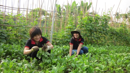 Chị Đinh Thị Hoa, thành viên ban cố vấn CLB Vì cộng đồng, cho biết: “Hôm nay nhóm mình chuyển 30kg rau đến cho bếp ăn của Trung tâm dạy nghề người khuyết tật ở Khâm Thiên, còn lại thu hoạch bán theo đơn đặt hàng, tổng cộng gần 70kg. Mình bán cao hơn giá thị trường nhưng có khách hàng biết là rau sạch và là vườn rau làm ra để phục vụ lợi ích cộng đồng, chăm sóc người khuyết tật nên mua với giá cao hơn một chút. Số tiền thu được sẽ dành cho các hoạt động từ thiện”. Vườn rau vừa được hình thành hơn ba tháng. Đất trồng rau do một doanh nghiệp cho mượn. Bà giám đốc khi biết rõ mục đích của dự án rau sạch vì cộng đồng đã không ngần ngại cho các bạn trẻ mượn đất lâu dài để thực hiện. Ngày đó khu đất vốn là nhà xưởng bỏ hoang gần hai năm, cỏ dại mọc cao quá gối. Hơn 40 con người trong câu lạc bộ ngày ngày vượt quãng đường hơn 30km từ Hà Nội lên Vân Phúc cùng làm cỏ, trồng rau, nuôi gà. Cả vườn rau rộn ràng tiếng cười đùa của các bạn trẻ. Phạm Thị Nhật Anh, 22 tuổi, đang là sinh viên năm cuối ĐH Khoa học tự nhiên (Hà Nội), hiện một tuần chỉ phải đến trường hai buổi, đã tình nguyện ở lại trông nom vườn rau. Nhiều cô bác ở Vân Phúc cũng thường xuyên qua lại giúp đỡ và chỉ dẫn cho Nhật Anh những công việc nhà nông, vì thế vườn rau chẳng bao giờ vắng bóng người. Bác Đặng Thị Sửu (61 tuổi) được cả đội trìu mến gọi là “cố vấn cấp cao”. Ngày nào bác cũng ghé qua đây, tay thoăn thoắt bó rau bác cười bảo: “Thấy các cháu nhiệt tình, hăng hái quá nên bác cũng muốn sang giúp một tay. Lúc đầu có cậu chưa quen còn cuốc cả vào chân, mấy cháu gái thì dị ứng phấn cỏ mẩn ngứa khắp người, thức ăn cho gà cũng không phân biệt được. Thế mà giờ thành thạo cả rồi đấy”. Chị Hoa cho biết CLB Vì cộng đồng và các mạnh thường quân sắp thử nghiệm mô hình trồng hoa và trồng nấm để tăng thu nhập từ vườn rau. Mục tiêu trước mắt của nhóm là đạt được tiêu chuẩn rau an toàn VietGAP để đưa sản phẩm ra thị trường tiêu thụ. Tám giờ sáng, rau sạch được bó và xếp gọn gàng, buộc thật khéo trên xe máy để chở về nội thành cho kịp bữa cơm trưa. Những đôi tay lấm lem bùn đất nhưng ai cũng cười vui. Không chỉ là rau sạch vì cộng đồng, họ đang mang theo cả tấm lòng trong trẻo thiện nguyện và lòng nhiệt tình tuổi trẻ. MAI HOA tuoitre.vn