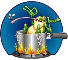 Có một chú ếch được thả vào một cái nồi nước lạnh. Đến khi nước sôi thì chú ta mới bắt đầu cảm thấy không thoải mái, nhưng lúc này đã muộn rồi. Chú ếch đã được luộc trong nồi nước đó.