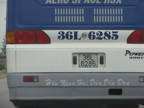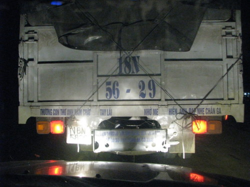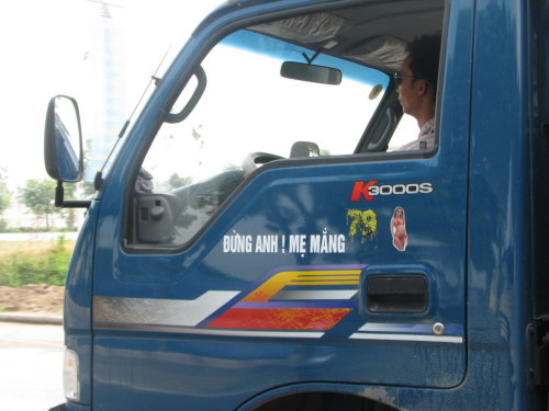 "Ngầu" nhất là xe tải Nam Định, trên đường chạy vào Đà Nẵng. Gặp chiếc này gần trạm thu phí đầu TP. Quảng Trị: "Thương con thơ anh nắm chặt tay lái/ Nhớ mẹ hiền, anh đạp nhẹ chân ga/ Nếu thương em, anh đừng nên chơi gái/ Lỡ có bồ, anh đừng để có thai". Cười sặc sụa từ Quảng Trị vào Đà Nẵng ...