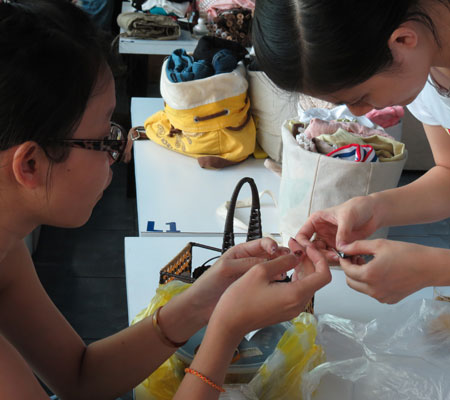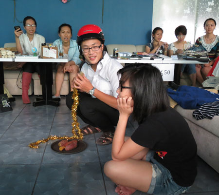Anh Phương (bên trái) là chủ nhân của Lọ Ước Mơ, người chiến thắng trong lần bán đấu giá của Giờ trà chiều 2. Gần về chiều, mọi người dường như gần nhau hơn, hoạt động chụp ảnh tại gian hàng Photo Booth cũng bắt đầu nhộn nhịp