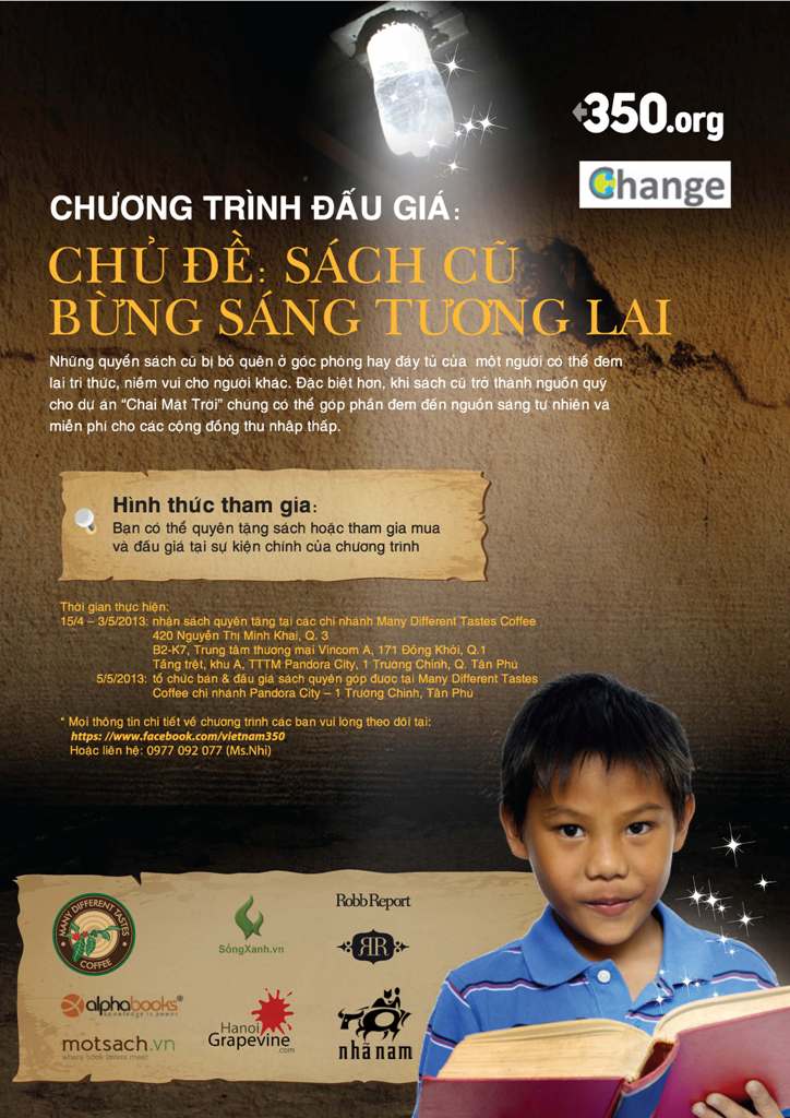 Chương trình quyên góp & đấu giá sách: Vào ngày 5/5/2013: tổ chức bán & đấu giá sách quyên góp được tại Many Different Tastes Coffee chi nhánh Pandora City – 1 Trường Chinh, Tân Phú