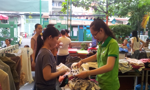 Gian hàng quần áo cũ của Hội Chữ thập đỏ phường Cô Giang