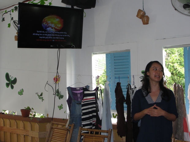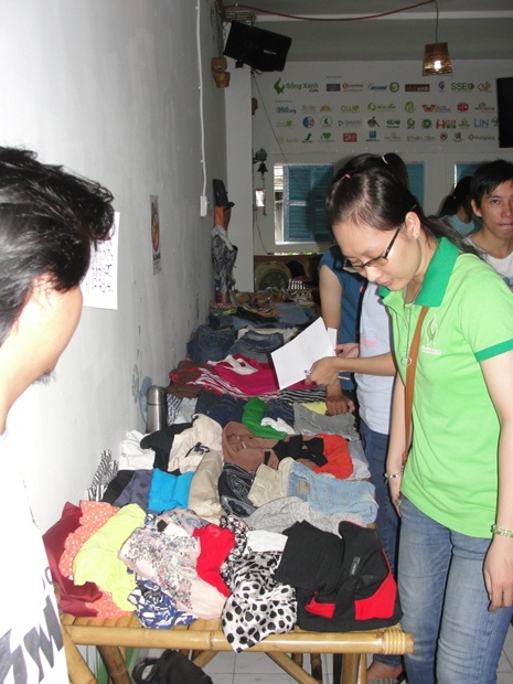 (SốngXanh.vn) - Chiều ngày 25/8/2013 vừa qua, Mạng Xã hội SốngXanh.vn đã tổ chức sự kiện Giờ Trà chiều 6 - Trung Thu Xanh tại Sống Xanh Cafe, 64 Hồ Hảo Hớn, Q1. Như mọi lần, sự kiện được Ths Môi trường Nguyễn Thị Quế Lâm - Ban Chủ nhiệm Mạng Xã hội SốngXanh.vn mở đầu bằng những thông tin về việc sử dụng tài nguyên thiên nhiên để sản xuất vải sợi, quần áo, việc sử dụng các hóa chất trong dệt nhuộm, việc quần áo là rác thải... và lý do tại sao mọi người nên tái sử dụng quần áo cũ để bảo vệ môi trường.: