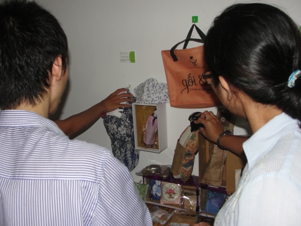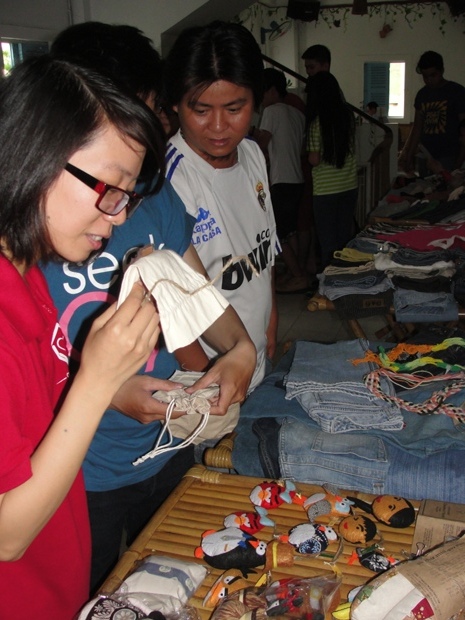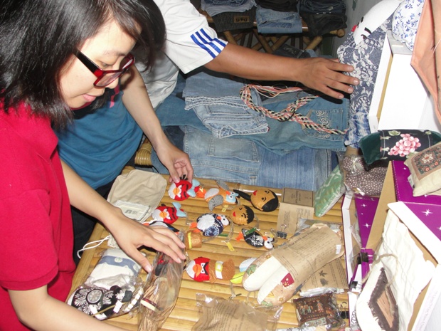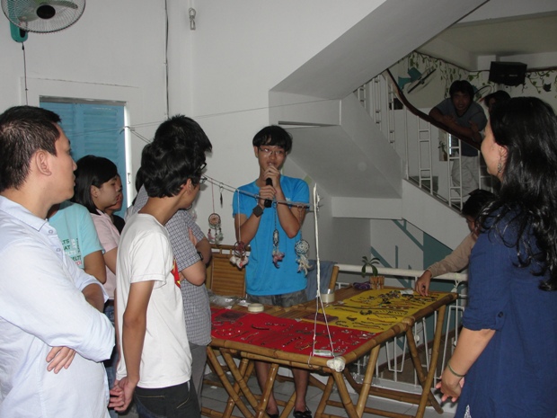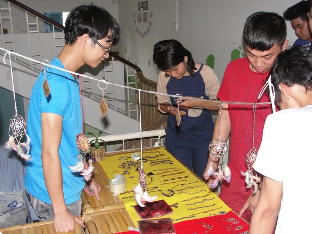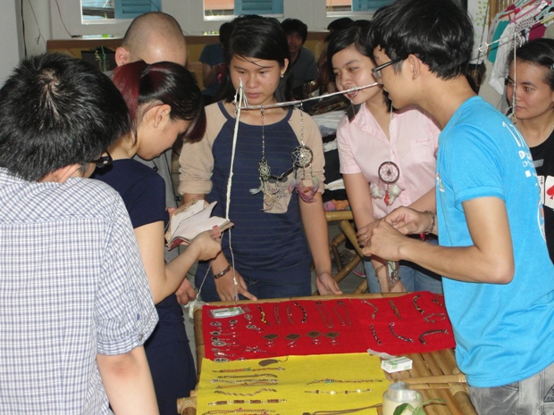 Các bạn từ CLB Thủ công Nguyện Ước Xanh đang giới thiệu những sản phẩm handmade do chính các bạn sinh viên làm để gây quỹ từ thiện: