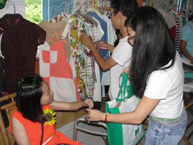 Bạn Bùi Thị Huyền, Chủ nhiệm CLB Thiện Tâm đang giới thiệu gian hàng của CLB: