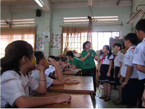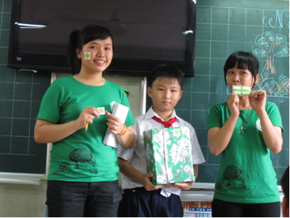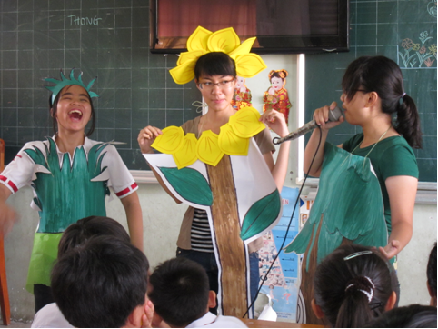 Tiểu phẩm “Cây trẻ, khỏe, đẹp” của nhóm GFOC Tiếp sau bài học là cuộc thi tìm hiểu về vai trò của cây xanh với cuộc sống nhằm giúp các em ghi nhớ những điều đã được học. Bốn đội đã tham gia và tạo nên không khí thật sự hào hứng cho lớp học, khác hẳn những giờ học khô khan trên lớp hàng ngày. Câu trả lời của các em cũng đầy sự hồn nhiên của trẻ thơ: “Cây cho bóng mát”, “Cây cho thức ăn”, “Cây cho trang trí” … khiến những thành viên GFOC và các cộng tác viên dù mệt cũng phải phì cười.