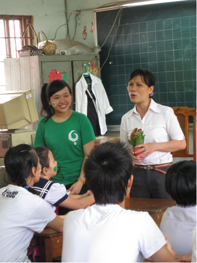 Sau khi buổi trồng cây dưới sân đã hoàn tất, cô hiệu trưởng đã phát biểu đôi lời trên lớp về ích lợi của chương trình “Ngày hội xanh 2”, đây là lần đầu tiên các em được hướng dẫn cách tiết kiệm điện và trồng cây ngoài trời. Ngoài ra, nhóm GFOC cũng có phần quà dành cho cô hiệu trưởng và cô chủ nhiệm lớp, nhằm cám ơn các cô đã tạo điều kiện để nhóm tổ chức chương trình. Về phần các em, ngoài bài học về môi trường đã nhận được, các em còn được tặng 1 phần quà nhỏ để khích lệ và động viên tinh thần, nhằm giúp các em học tốt và luôn giữ ý thức về môi trường xung quanh mình