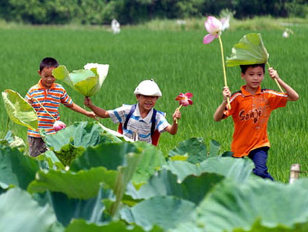Ta đã hiểu rằng mỗi cây cỏ, mỗi bông hoa, hay mỗi con chim nhỏ bé kia chỉ là một phần được sinh ra từ tạo hóa. Và chúng thuộc về thế giới tự nhiên. Những cái cây ấy, nó phải thuộc về thế giới của nó, ở đó nó mới có thể cho ta những bông hoa, những trái quả ngọt ngào. Và những con chim chỉ khi được nhảy nhót chuyền cành trên những cái cây thì nó mới cho những tiếng hót véo von, thánh thót nhất. Trong cái nắng, cái gió oi ngột trái mùa, ta lại thèm được hòa mình cùng thiên nhiên, để được tìm lại những khoảng không gian bao la thanh bình giữa những làng quê, trên những cánh đồng mênh mông xanh mướt, để được khám phá, chơi đùa như thời còn con trẻ. Ta nhớ cánh đồng quê ta với mướt mải màu xanh, với quanh co những con bờ ngợp cỏ in mòn vết chân ta cùng chúng bạn. Những buổi trưa hè, mình trần, đội nắng, ta mê mải theo cánh diều trên khắp những con đường nhỏ quanh co. Ta giống như con chim sẻ non giữa bầu trời bao la. Bâng khuâng. Nhỏ bé. Những bước chân chim, lùi lại tiến, ánh mắt say sưa nhìn theo từng nhịp chao lượn chập chờn. Đâu đó dậy lên tiếng cười nói giòn giã vang dội trong lòng ta. Ta nhớ những cây cỏ nhọ ta vẫn thường thi nhau tìm kiếm. Sau mỗi ván tút xì mặt ta lại thêm một vệt quệt dọc, ngang. Khuôn mặt nhọ nhem ta nhoẻn cười thích thú. Ta cũng chẳng còn nhận được ra ta. Nhưng vẫn ánh mắt ấy, trong veo ngây ngất giữa niềm vui trong sáng. Còn đây, những khóm cỏ gà ta vẫn thường khom lưng tìm, bới. Nắm lớn, nắm nhỏ. To hò, ta hét. Nụ cười nghiêng ngả, thích thú sau mỗi cuộc chơi. Mỗi lần như vậy, nơi chân ta đứng lại bị biến thành một bãi chiến trường. La liệt những cánh cỏ rơi. Nhưng chỉ sau một vài ngày, những chú cỏ gà con lại lớn nhanh như thổi. Chúng ta lại kiếm tìm, lại chơi, lại cười đùa ngặt nghẽo. Tuổi thơ của ta đã lớn lên giữa cánh đồng mênh mông ấy, lớn lên cùng nắng, gió, cùng tiếng chim ca.