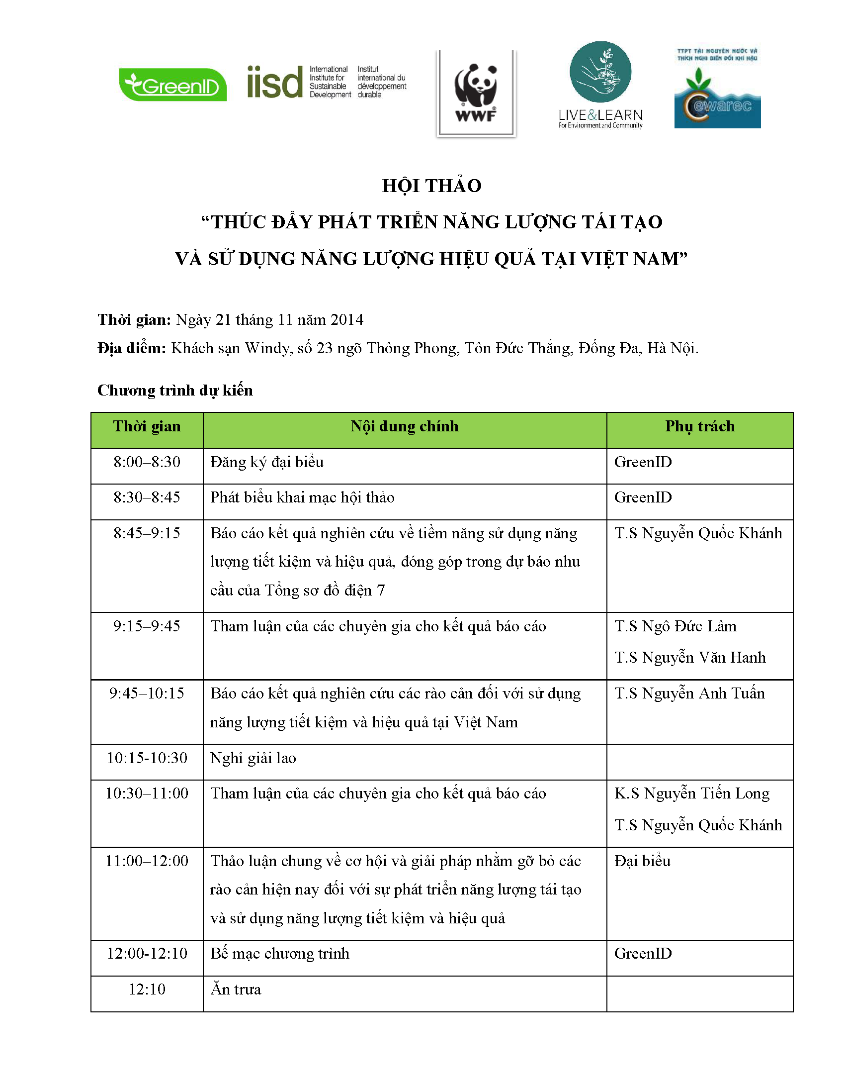 Kính gửi quý chuyên gia/cán bộ nghiên cứu hoạt động trong lĩnh vực năng lượng, Hội thảo dự kiến được tổ chức ngày 21 tháng 11 năm 2014 tại khách sạn Windy - số 23 ngõ Thông Phong, Tôn Đức Thắng, Đống Đa, Hà Nội.