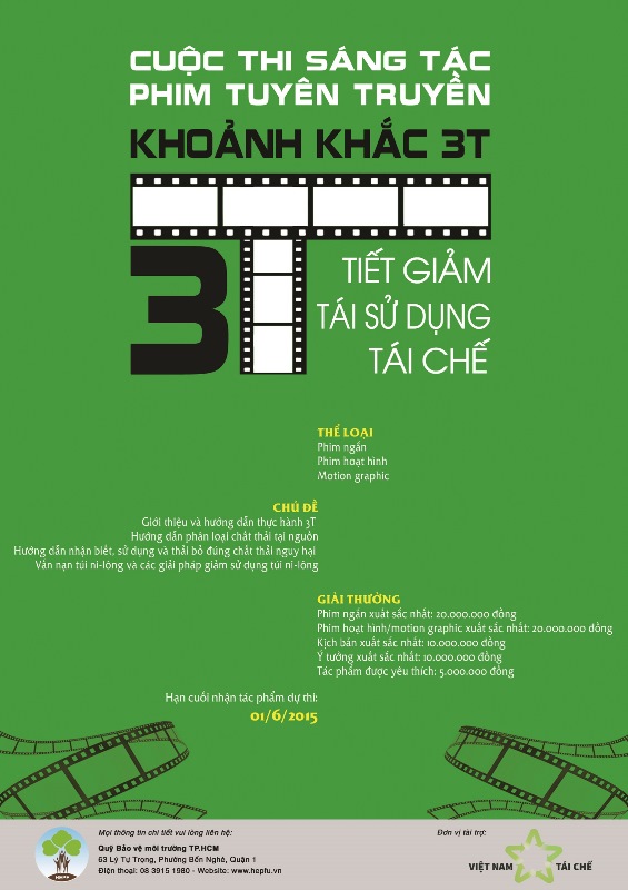 Quỹ Bảo vệ môi trường TP.HCM - 63 Lý Tự Trọng, Q.1, TP.HCM (Ngoài bì thư hoặc tiêu đề email vui lòng ghi: Tác phẩm dự thi “Khoảnh khắc 3T”.