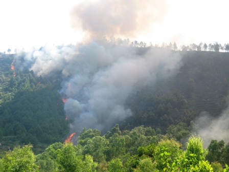 Hàng chục héc ta rừng thông bốc cháy dữ dội
