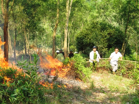 Lực lượng chức năng tham gia chữa cháy Huyện Hậu Lộc đã chỉ đạo địa phương phối hợp với ngành kiểm lâm huy động tối đa lực lượng đến hiện trường tham gia công tác chữa cháy. Theo ghi nhận tại hiện trường, khu vực rừng xảy ra cháy là rừng thông lẫn cây keo. Dưới tán rừng là một lớp thực bì nên khi ngọn lửa bén vào, bốc cháy rất nhanh. Đám cháy còn lan sang cả khu vực rừng giáp ranh giữa xã Châu Lộc, huyện Hậu Lộc và xã Hoằng Khánh, huyện Hoằng Hóa. Lực lượng kiểm lâm đã phải dùng máy thổi gió để ngăn đám cháy không bùng phát rộng ra các khu vực xung quanh. Ông Nguyễn Văn Ấp, Bí thư huyện ủy Hậu Lộc cùng ông Lê Thế Long, Chi cục trưởng Chi cục kiểm lâm Thanh Hóa đã có mặt tại hiện trường để chỉ đạo các lực lượng chữa cháy. Sau hơn 3h đồng hồ tích cực dập lửa, đến 16h cùng ngày, ngọn lửa cơ bản đã được khống chế. Tuy nhiên, do thời tiết nắng nóng kéo dài, nên ngành kiểm lâm đã phải bố trí lực lượng trực tại hiện trường để phòng không cho đám cháy bùng phát trở lại. Vụ cháy đã thiêu rụi khoảng 30 ha rừng thông lẫn keo. Theo những người dân ở đây cho biết, có thể do những người đi đền hóa sớ, bất cẩn nên để ngọn lửa bốc cháy và lan vào khu vực rừng cạnh Đền Hàn. Hiện nguyên nhân vụ cháy đang được cơ quan chức năng điều tra làm rõ. Duy Tuyên Tags: sống xanh, thảm họa môi trường, cháy rừng, cháy rừng thông, cháy rừng Thanh Hóa, nguy cơ cháy rừng
